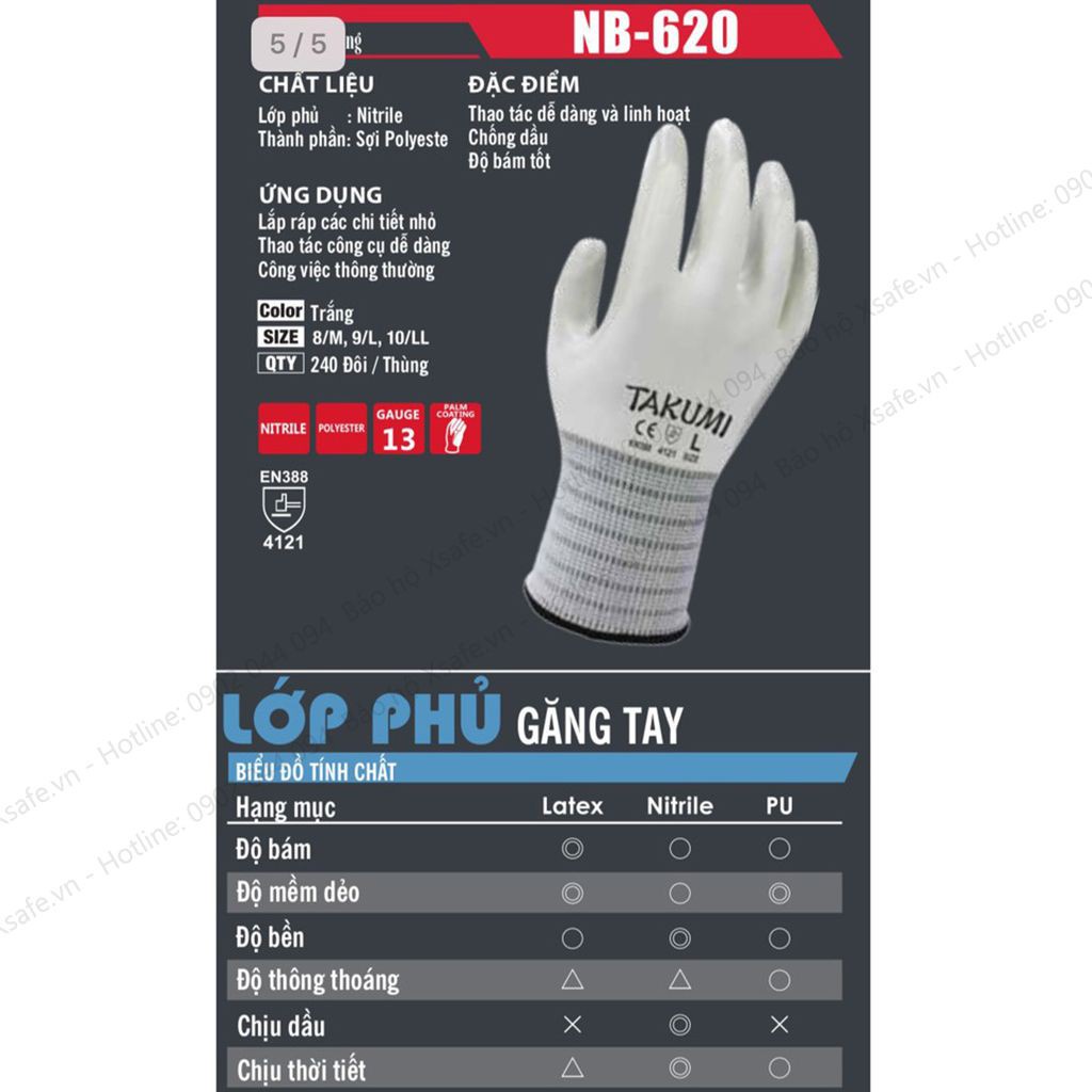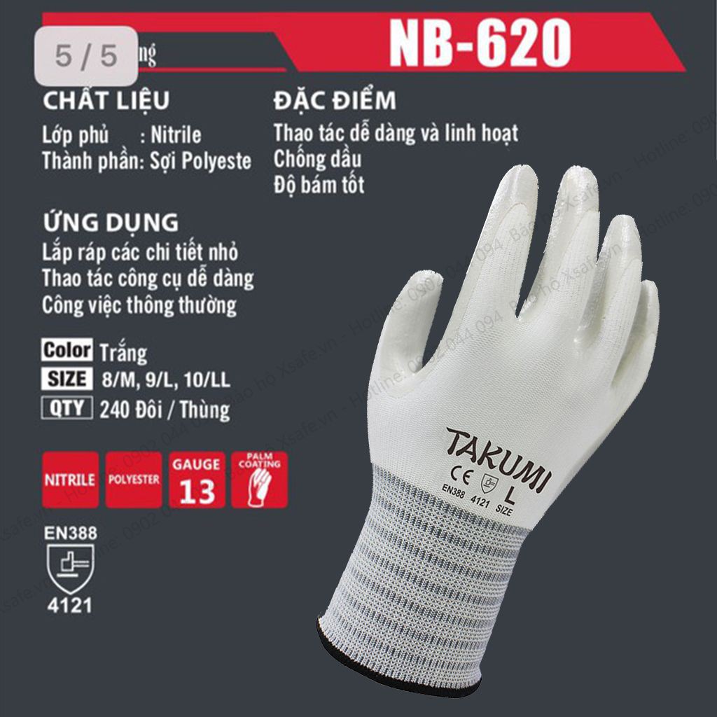 THÔNG SỐ KỸ THUẬT GĂNG TAY BẢO HỘ TAKUMI NB-620