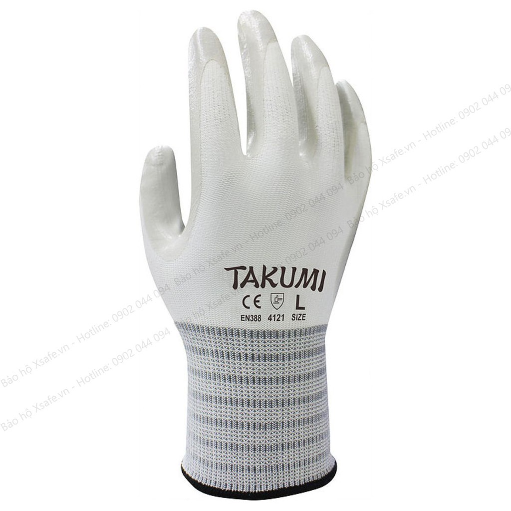 Găng tay bảo hộ Takumi NB-620 độ chính xác cao, phủ lớp nitrile chống dầu nhớt, tăng độ bám Bao tay bảo hộ lao động