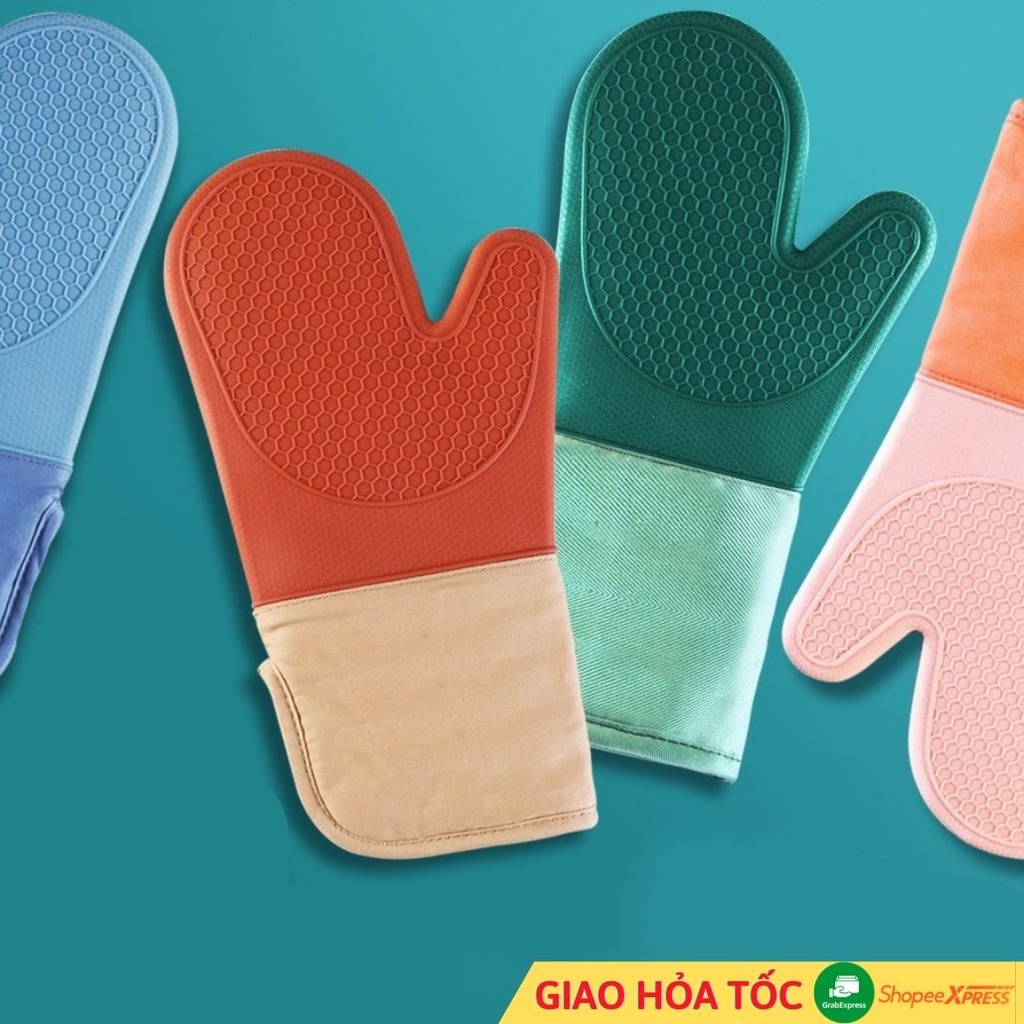 Găng Tay Cách Nhiệt Bằng Cotton và Silicon Dùng Cho Làm Bếp Và Nấu Nướng