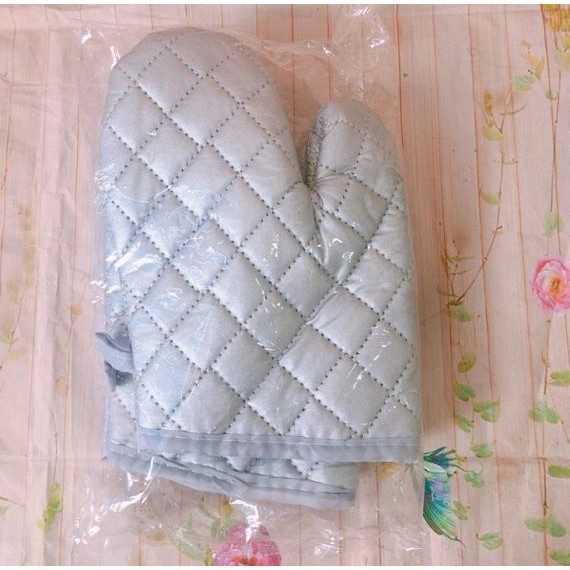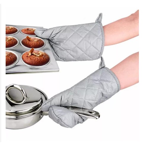 - Chiếc găng tay vải dày, cực bền, chịu nhiệt tốt bảo vệ cho đôi tay khi lấy bánh ra khỏi lò nướng hay thức ăn từ trong lò nướng, lò vi sóng,bếp than…