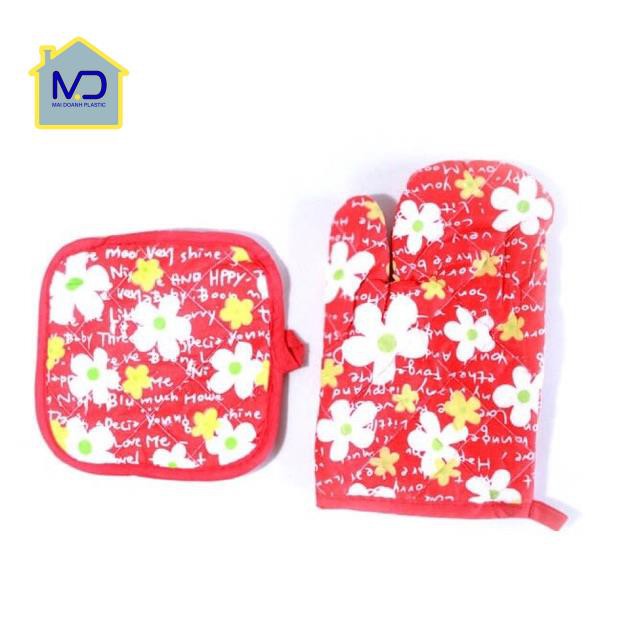găng tay cách nhiệt, miếng bắcxoong( hoa bất kỳ)