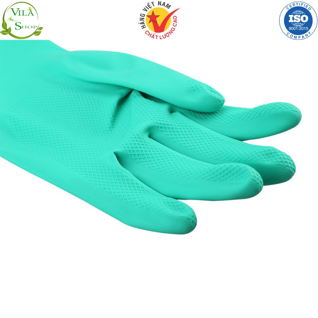 - Găng làm bằng cao su tổng hợp nitrile với lớp lót cotton bên trong