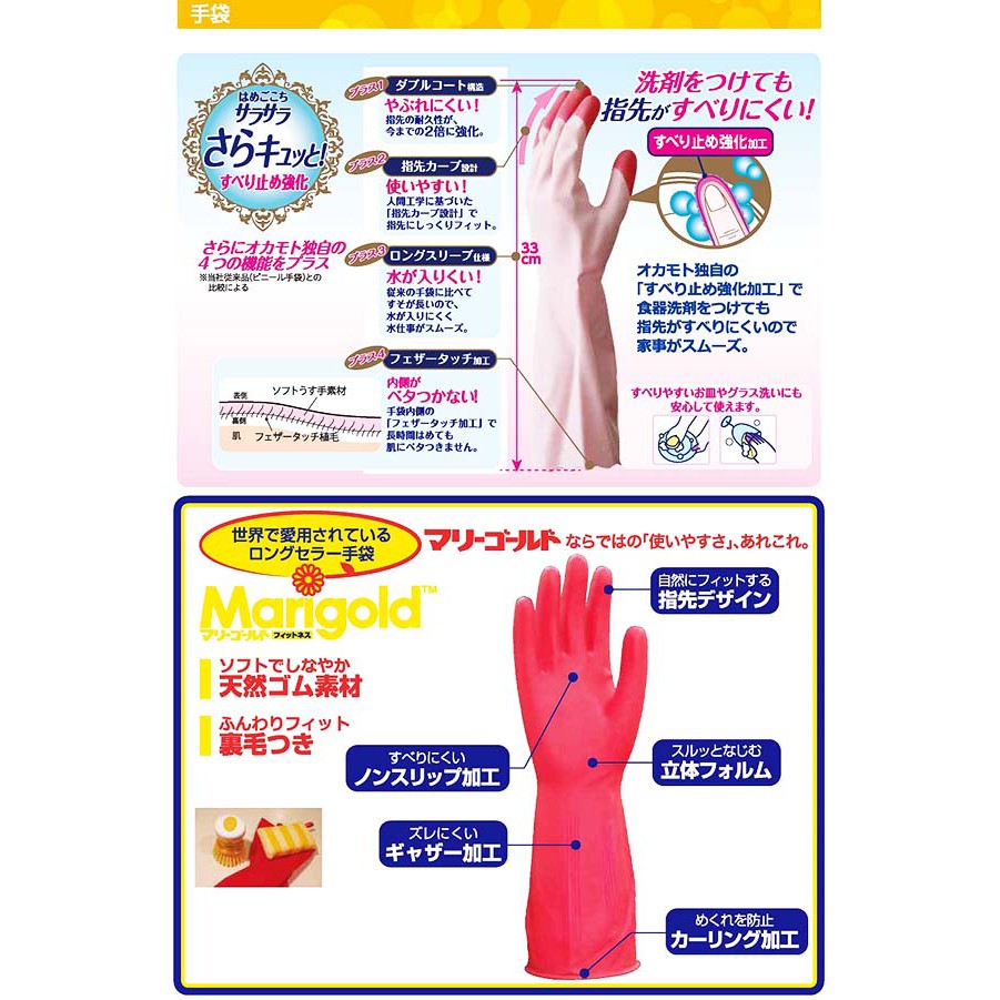 Nhà cửa & Đời sống > Dụng cụ nhà bếp > Tạp dề & gắng tay nấu nướng || Găng tay cao su cao cấp chống trượt OKAMOTO Nhật Bản bên trong không dính, đầu ngón tay khó rách, xử lý hai lớpCòn hàng