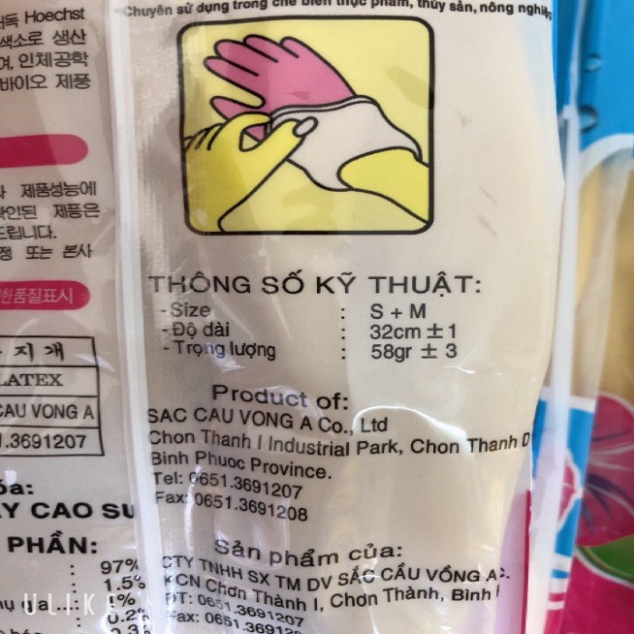 Găng tay cao su SẮC CẦU VỒNG được sản xuất từ các nguyên liệu cao su thiên nhiên và hóa chất không độc hại nên găng tay mềm, độ co giãn tốt, chống nước và chống hóa chất nhẹ.