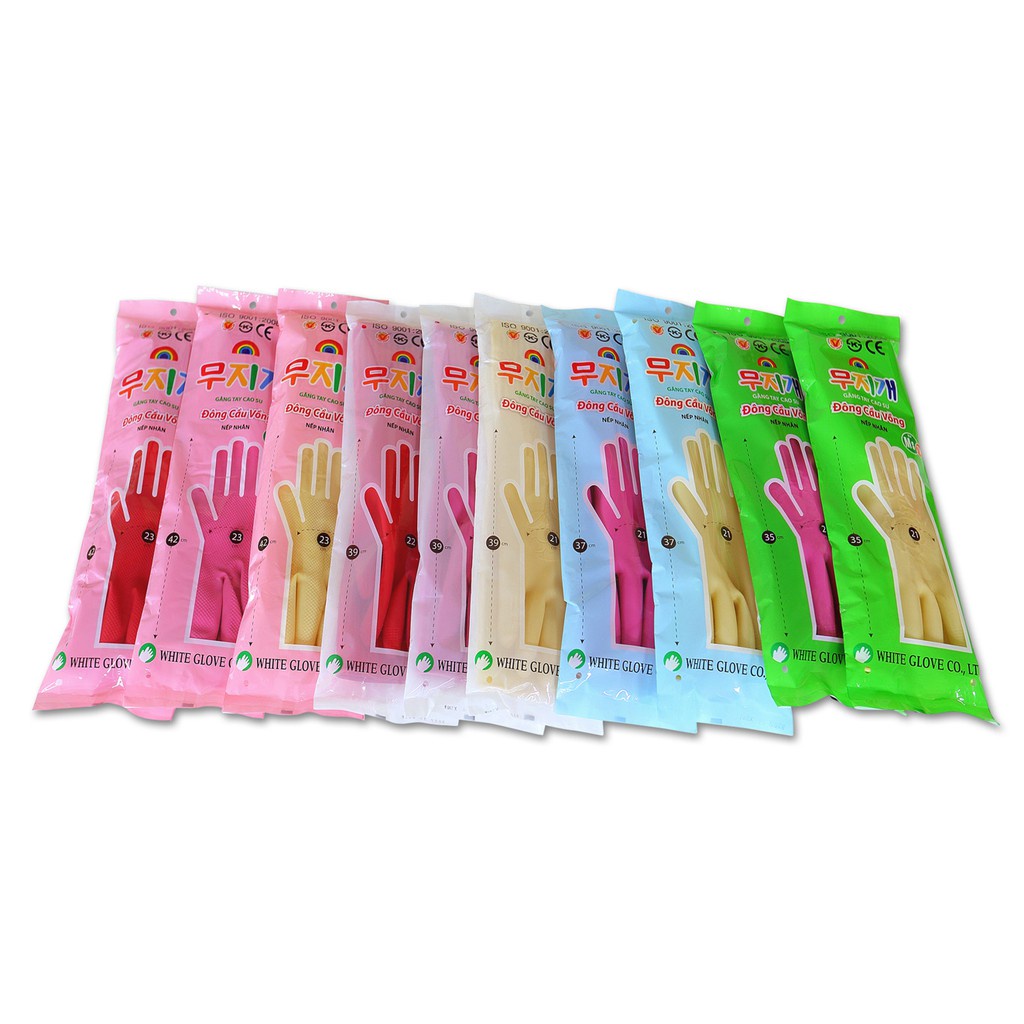 Găng tay cao su Cầu Vồng siêu dai siêu bền đẹp, găng tay cao su tự nhiên, không ảnh hưởng đến da tay