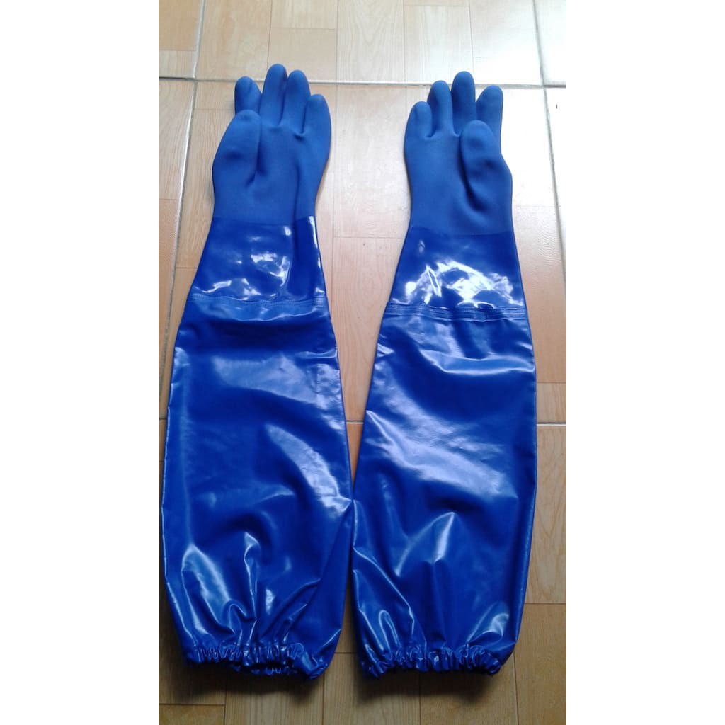• Mô tả: Găng tay được làm hoàn toàn từ PVC có lớp lót bông bên trong, lòng bàn tay có nhám giúp chống trơn trượt, chiều dài 62cm giúp bảo vệ tuyệt đối bàn tay và cánh tay.