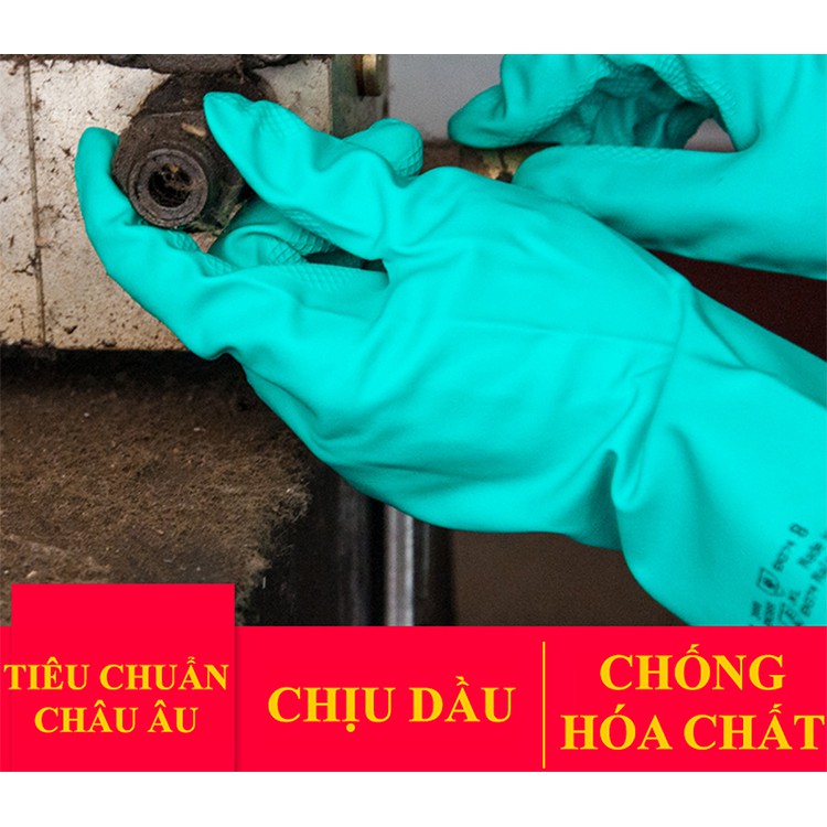 Găng tay cao su chống hóa chất, chống cắt, lót cotton thấm hút mồ hôi bảo vệ đôi tay. Găng tay Ansell 37-176 chính hãng