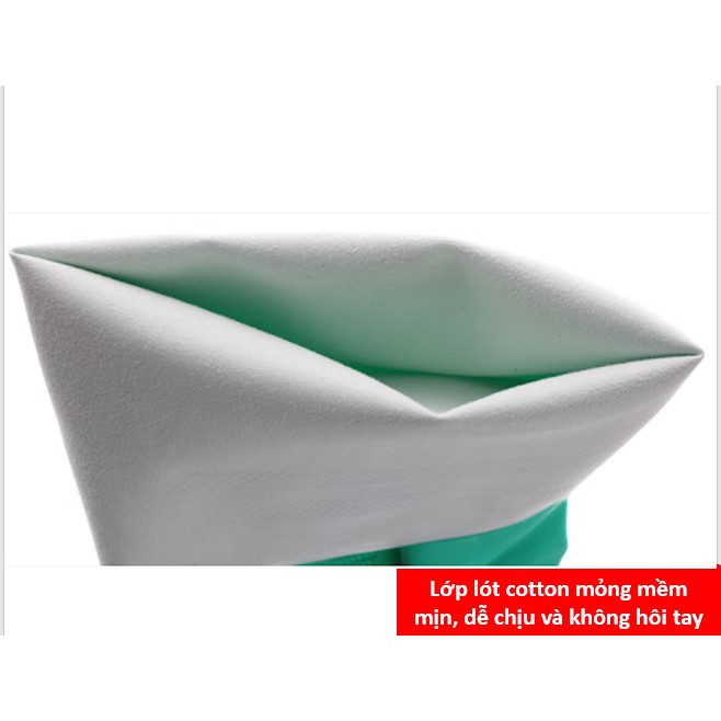- Găng làm bằng cao su tự nhiên, có lớp cotton bên trong thấm hút mồ hôi