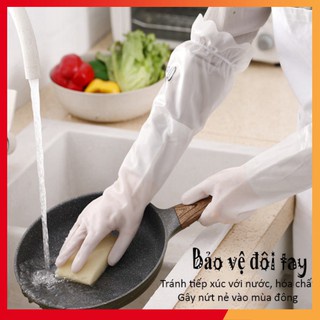 Nhà cửa & Đời sống > Dụng cụ nhà bếp > Tạp dề & gắng tay nấu nướng || Găng Tay Cao Su Dài Tay Siêu Dai Siêu Bền, Lót Nỉ Có Chun Chống Tuột, Gang Tay Rửa Bát Giữ ẤmCòn hàng