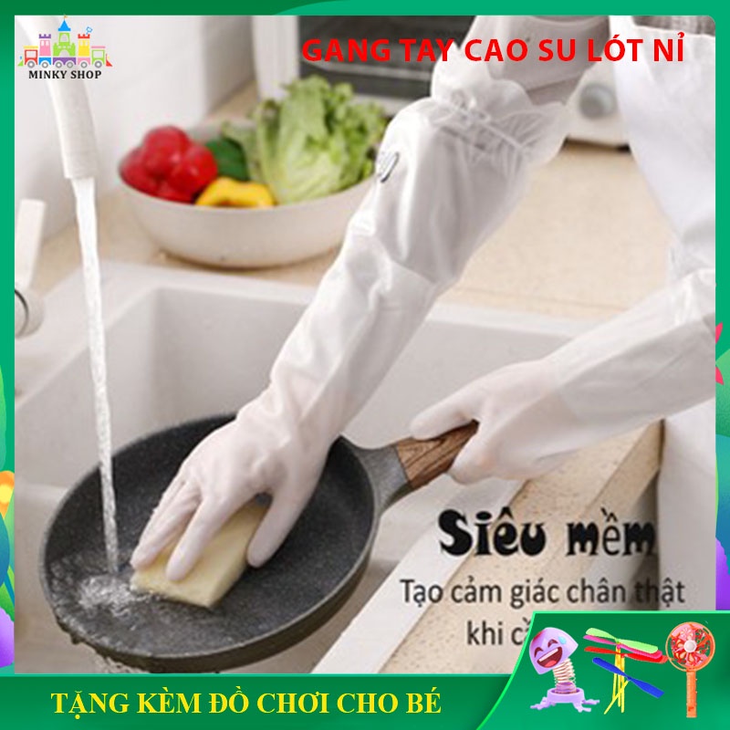 Găng Tay Cao Su Dài Tay Siêu Dai Siêu Bền, Lót Nỉ Có Chun Chống Tuột, Gang Tay Rửa Chén Bát Giữ Ấm