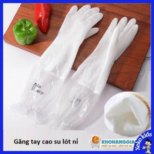 Găng Tay Cao Su Dài Tay Siêu Dai Siêu Bền, Lót Nỉ Có Chun Chống Tuột, Gang Tay Rửa Bát Giữ Ấm XEKO65