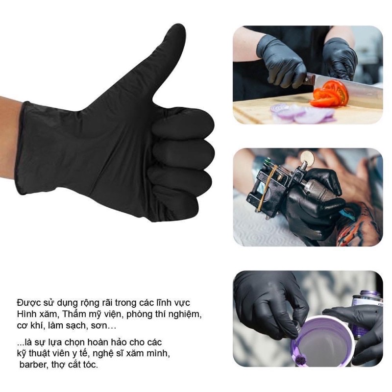 🌵🌵 GĂNG TAY CAO SU ĐEN ❣️❣️(Chuyên dùng trong phun xăm, Nhuộm tóc, Nail,,,,,)