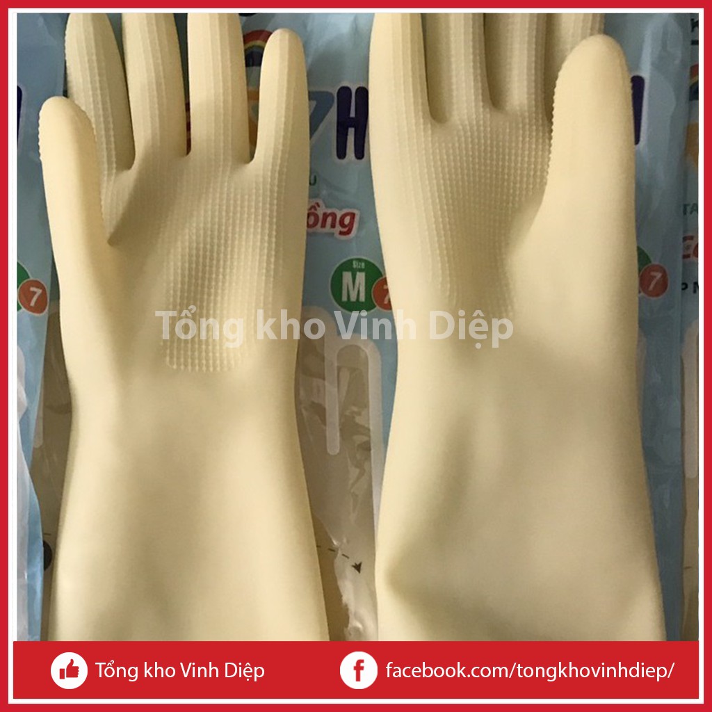 - Lòng bàn tay của găng tay cao su có hoa văn có độ bám dính cao, chống trơn.