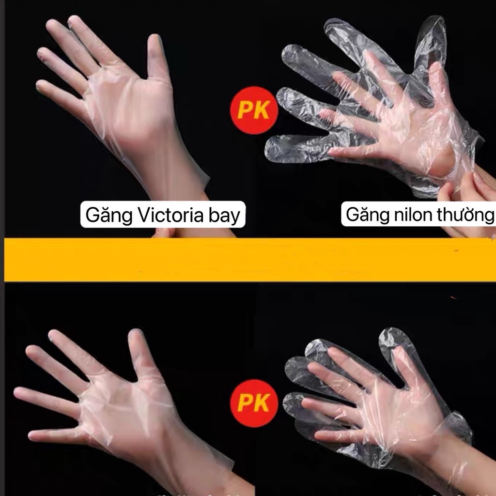 Găng tay đa năng dùng 1 lần siêu dai Victoria Bay, chất liệu TPE không mùi chống nhăn hộp 100 cáiGăng tay nilon siêu dai Victoria Bay, dùng đi chợ, nấu ăn, lau dọn nhà cửa đều rất tiện lợi.