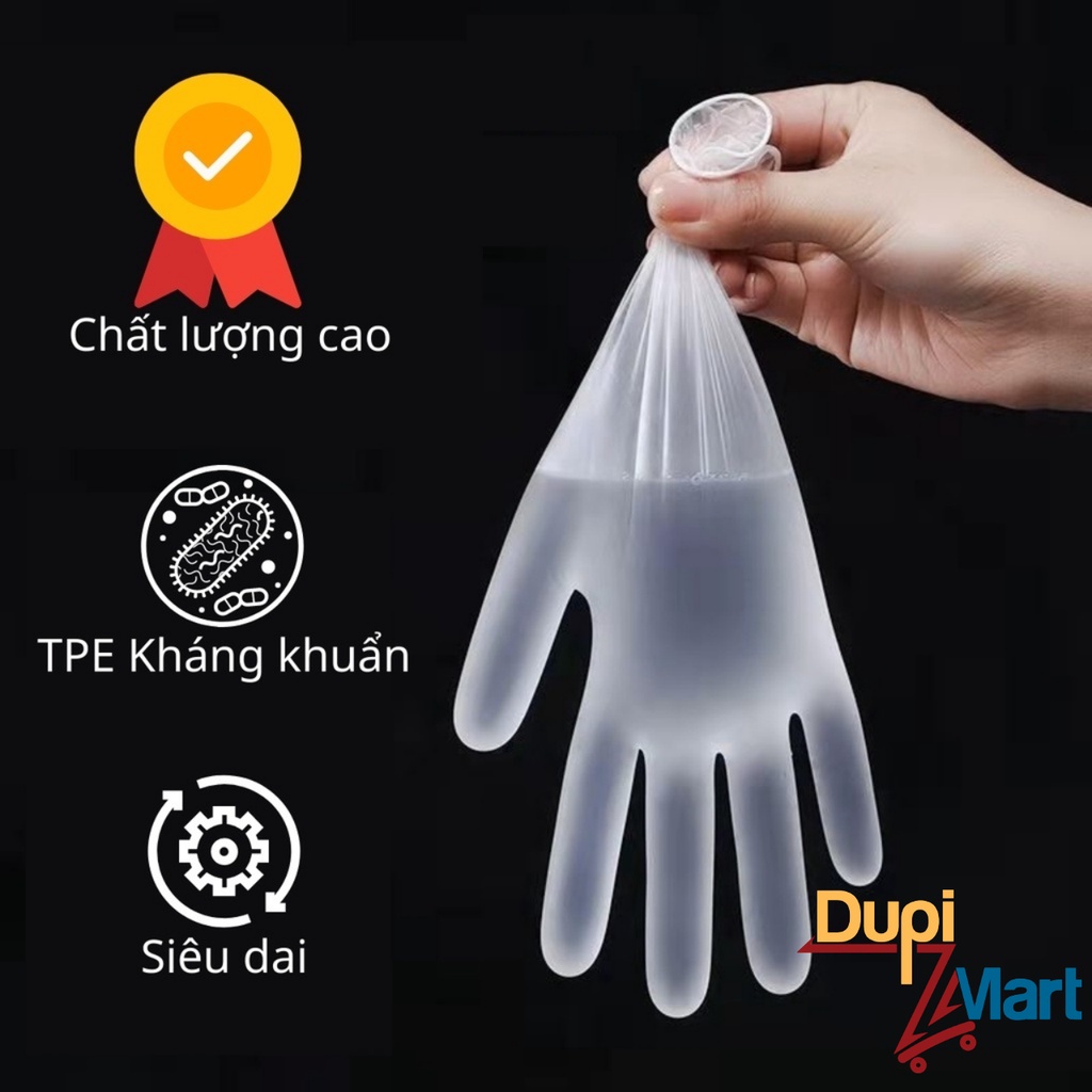 - Chất liệu: TPE cao cấp ( Thermoplastic Elastomer Gloves)