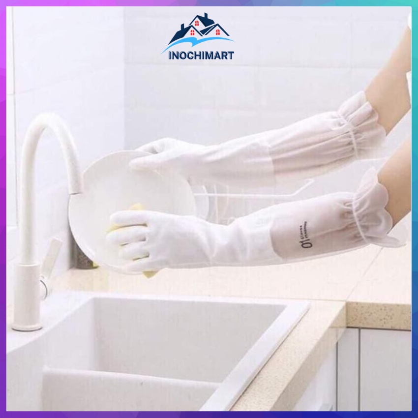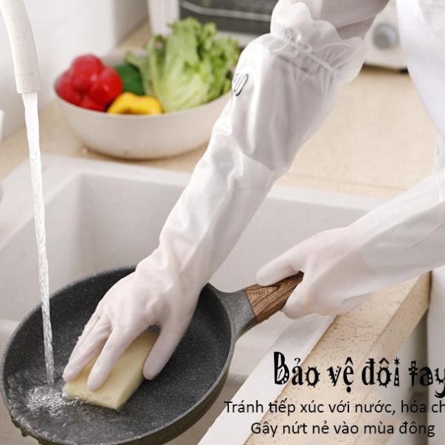 Nhà cửa & Đời sống > Dụng cụ nhà bếp > Tạp dề & gắng tay nấu nướng || Găng Tay Cao Su Loại Dài Lót Nỉ Siêu Dai, Siêu Bền, Găng Tay Rửa Bát Có Bo Chun Chống TuộtCòn hàng
