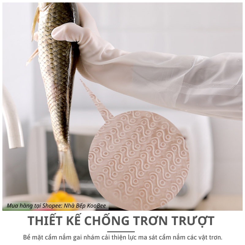 Nhà cửa & Đời sống > Dụng cụ nhà bếp > Tạp dề & gắng tay nấu nướng || Găng tay cao su lót bông nỉ loại dài - Găng tay rửa bát làm bếp siêu dai không mùi KooBee (NB)Còn hàng