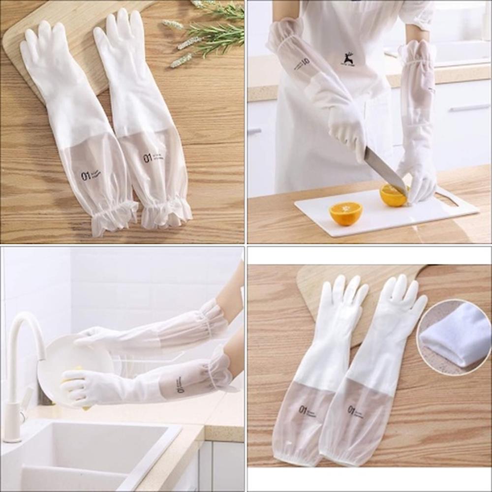 Nhà cửa & Đời sống > Dụng cụ nhà bếp > Tạp dề & gắng tay nấu nướng || Găng tay cao su lót nỉ chống lạnh tay ống dài có đai thít kín rửa bát vệ sinh nhà cửa mã 70039Còn hàng