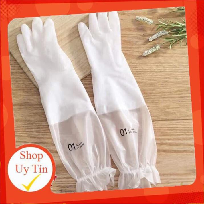 - Găng tay siêu dai mọi người cũng ko còn lạ, nhưng nhiều khi dùng cứ hay bị tụt hoặc nước lọt vào bao tay. Hãy tìm sang loại có chun giữ ở cánh tay như ảnh nhé.