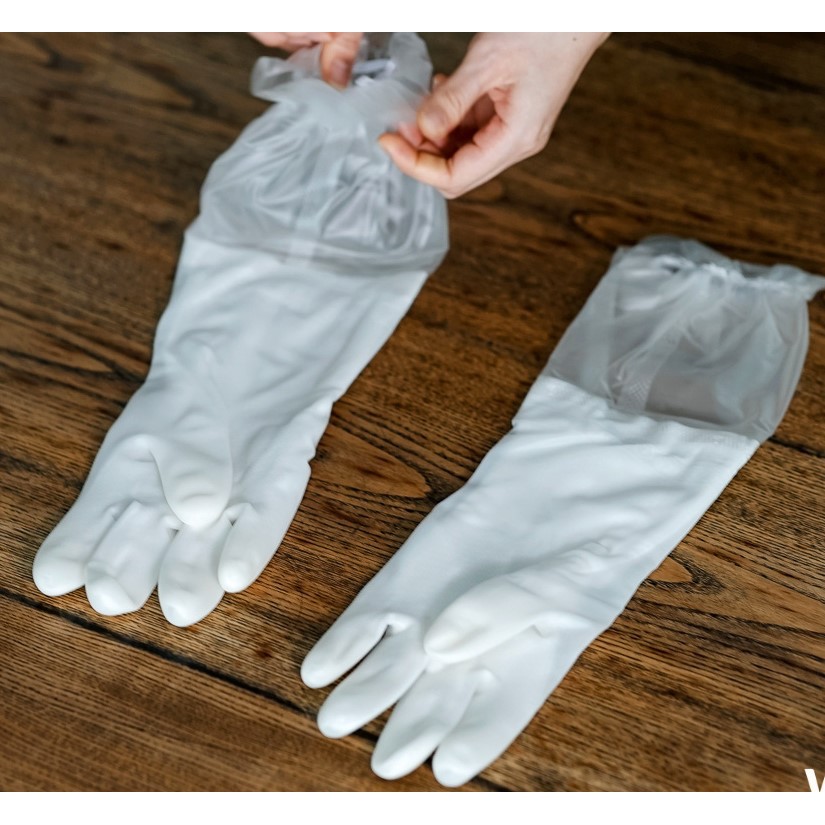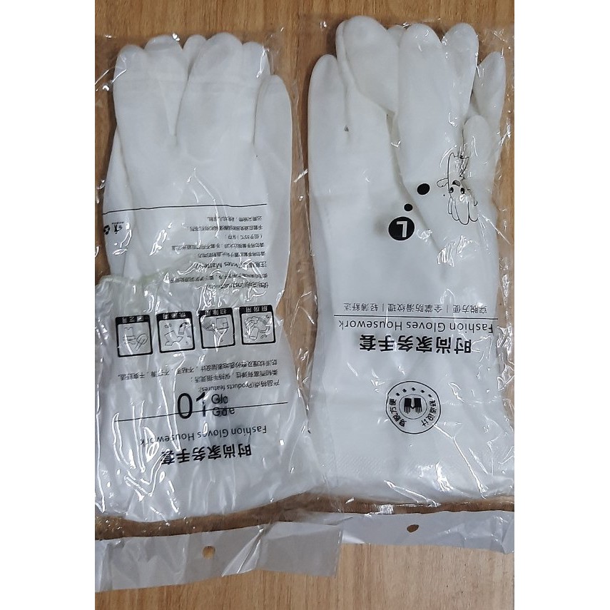 - Phần găng tay màu trắng được làm từ cao su mềm, dai, chắc chắn, được lót nỉ bên trong giữ ấm cho đôi tay khi làm việc nhà.