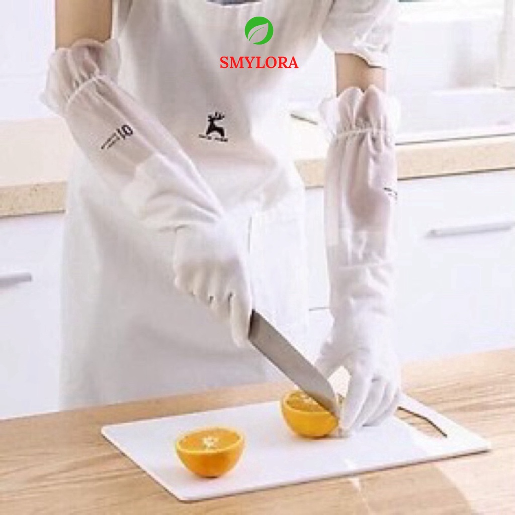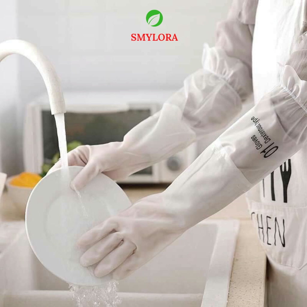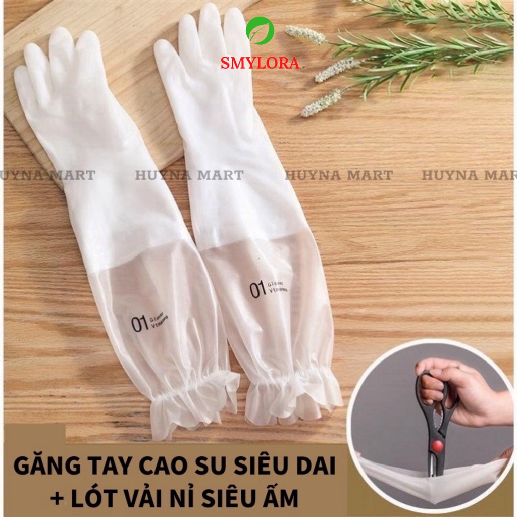 Găng Tay Cao Su Lót Nỉ Loại Dài Siêu Dai, Có Dây Chun Chống Tuột, Gang Tay Rửa Bát Giữ ẤmThông tin sản phẩm: