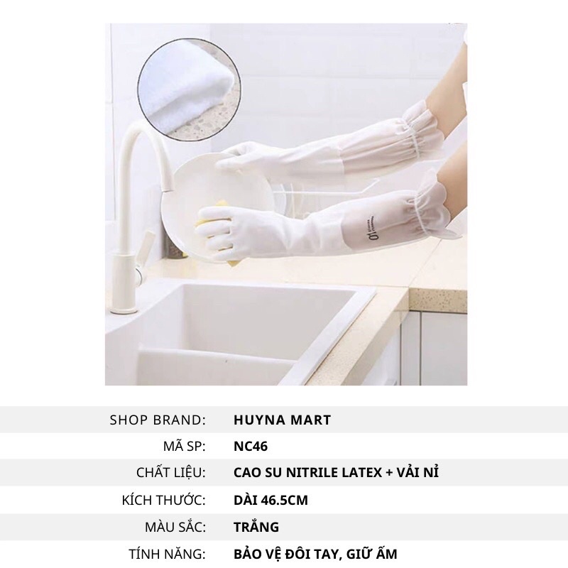 Gang Tay Cao Su Lót Nỉ Loại Dài Siêu Dai Cổ Hoa Có Dây Chun Chống Tuột, Gang Tay Rửa Bát Giữ Ấm