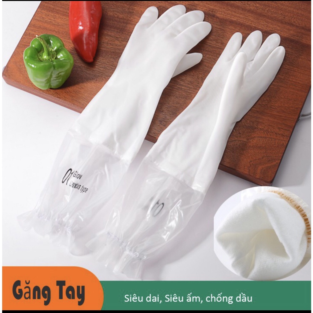 Nhà cửa & Đời sống > Dụng cụ nhà bếp > Tạp dề & gắng tay nấu nướng || Găng tay cao su lót nỉ siêu dai, siêu bền,găng tay cao su rửa bát dài có dây thun chống tuộtCòn hàng
