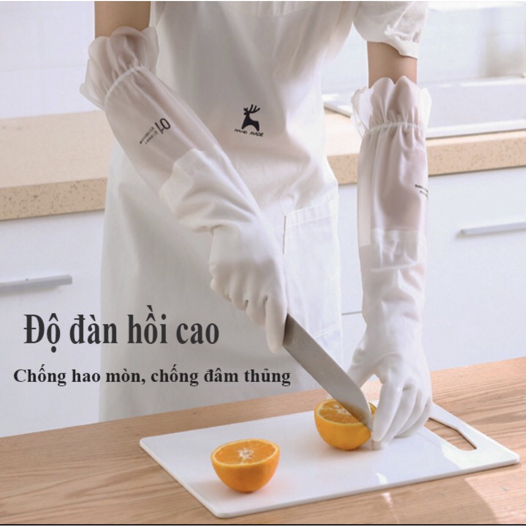 Găng tay cao su lót nỉ siêu dai, siêu bền,găng tay cao su rửa bát dài có dây thun chống tuột