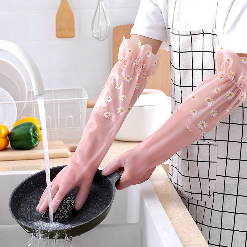 Găng tay cao su lót nỉ siêu dai hàng nhập khẩu cao cấp | Bao tay làm bếp chống nước giữ ấm tay