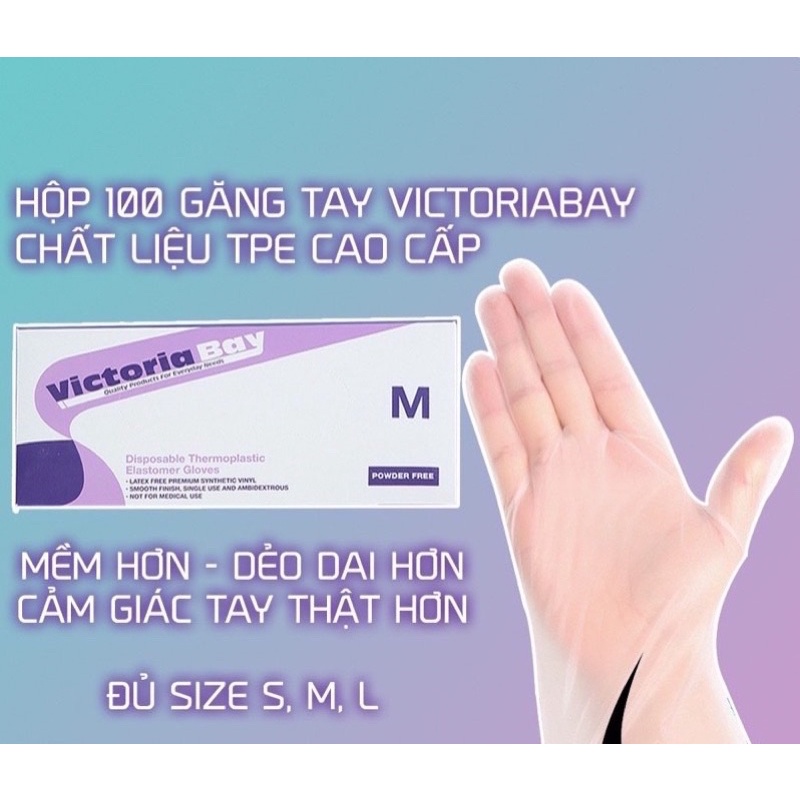 Hộp 100 găng tay Victoria Bay chất liệu TPE, Bao tay cao su rửa bát làm bếp vệ sinh siêu dai không mùi không bột cao cấp- Mềm hơn, dai hơn, cảm giác tay thật hơn là những thứ mà găng tay Victoria Bay có mà các loại găng tay cao su hay PE không có.