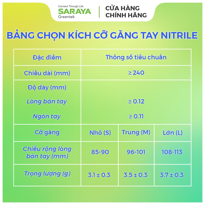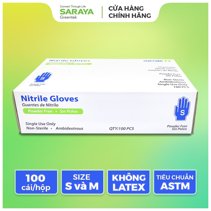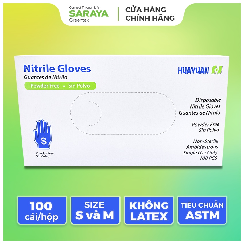 Nhà sản xuất: Sản phẩm của SARAYA CO., LTD (Nhật Bản), 2-2-8 Yuzato, Higashisumiyoshi-Ku, Osaka 546-0013 Japan. Do công ty Dong Tai City Huayi Gloves Co., Ltd sản xuất tại Trung Quốc.Quy cách đóng gói: 100 Cái (50 đôi)/ hộp.