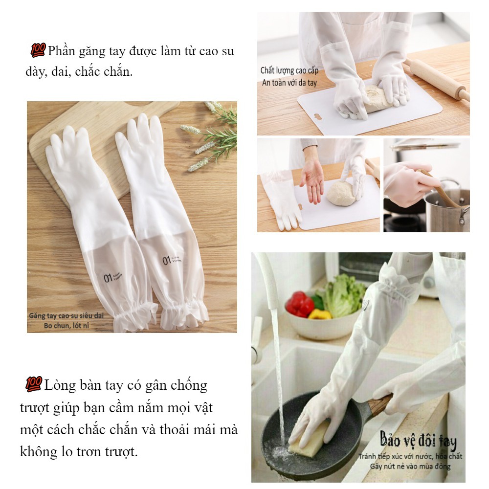 Găng Tay Cao Su Rửa Bát Cổ Cao Siêu Dai Có Chun Chống Tụt