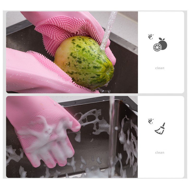 ✔ Găng tay rửa bát không cần dùng đến giẻ, lớp gai silicon sẽ vừa làm sạch lại tạo bọt cực nhiều.