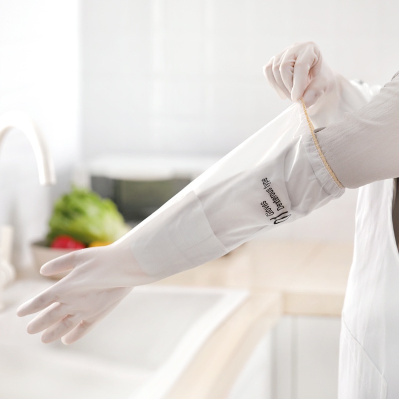❷ Đặc biệt chiều dài qua khuỷu tay rất tiện khi sử dụng và không lọ bị ướt tay áo hay nước bắn vào trong.