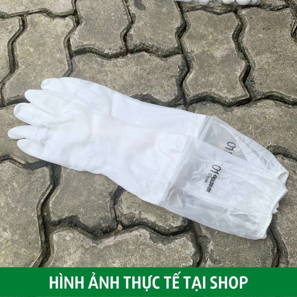 - Bao tay dài qua khuỷ tay và có bo chun tránh nước lọt vào ướt áo