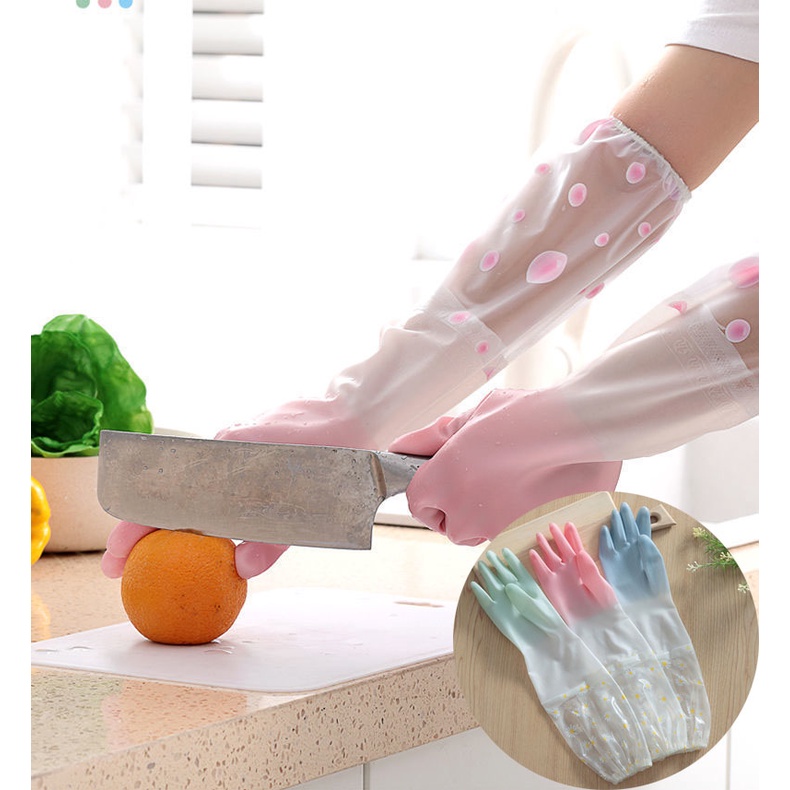 Giới thiệu Găng tay cao su rửa chén cổ cao có chun bo tay chống tụt họa tiết ngẫu nhiên