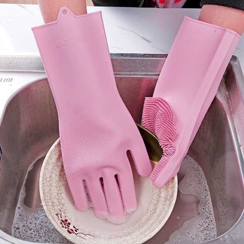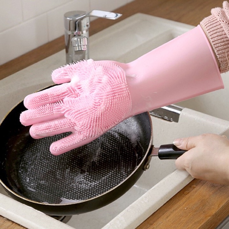 Nhà cửa & Đời sống > Dụng cụ nhà bếp > Tạp dề & gắng tay nấu nướng || Gang tay cao su rửa chén silicon siêu dai đa năng, Gang tay rửa bát gai lòng bàn tay 2.1Còn hàng