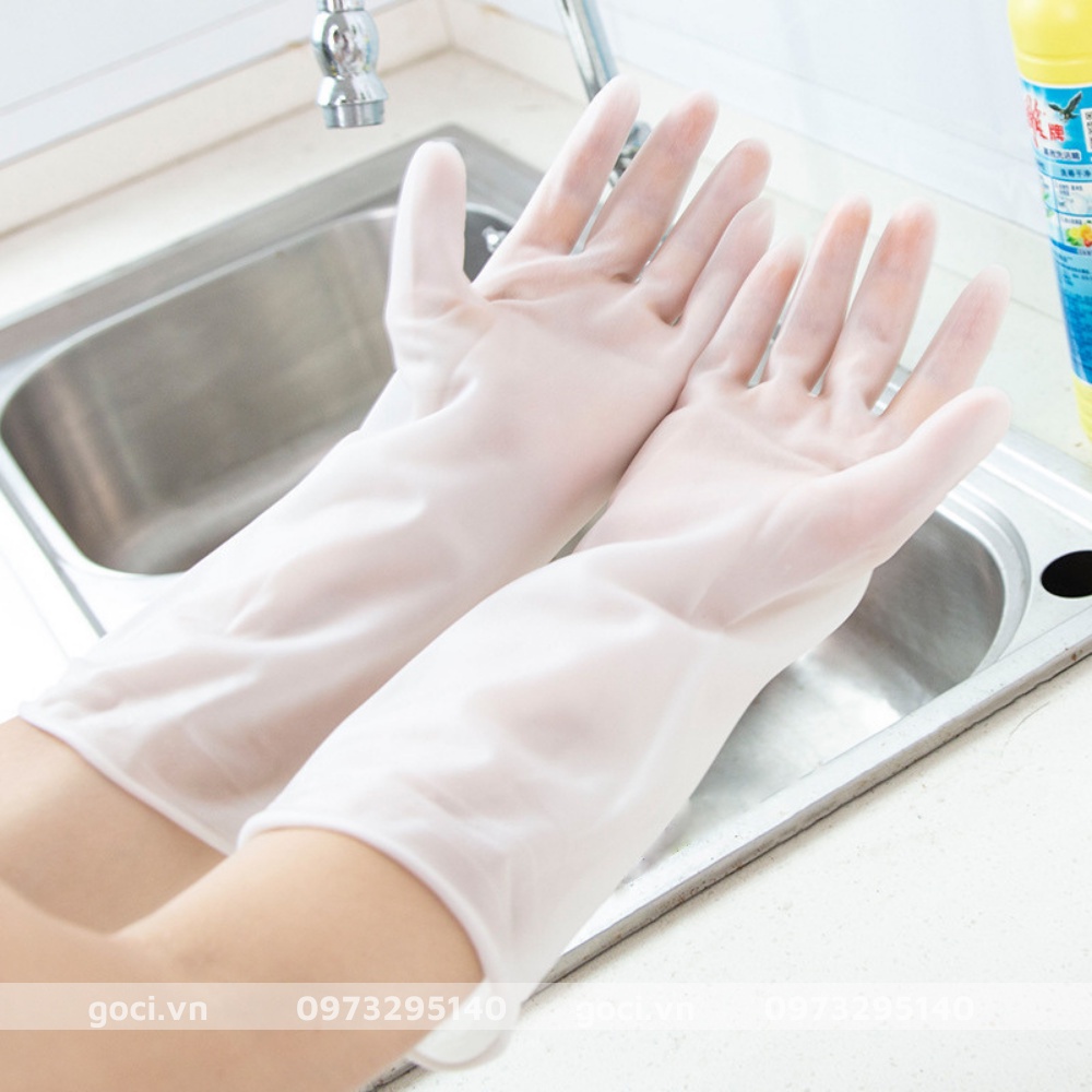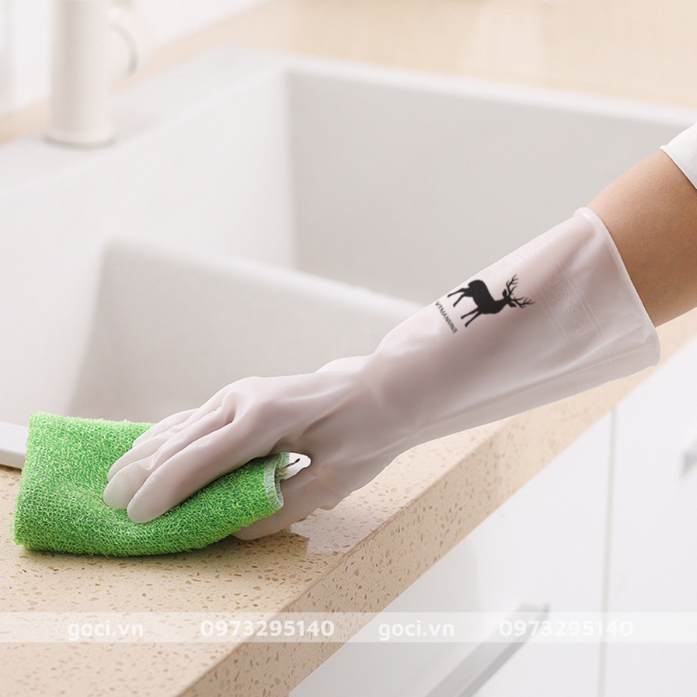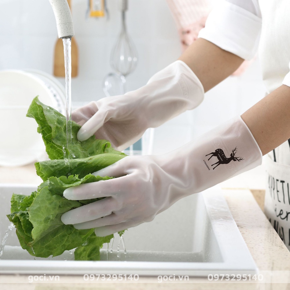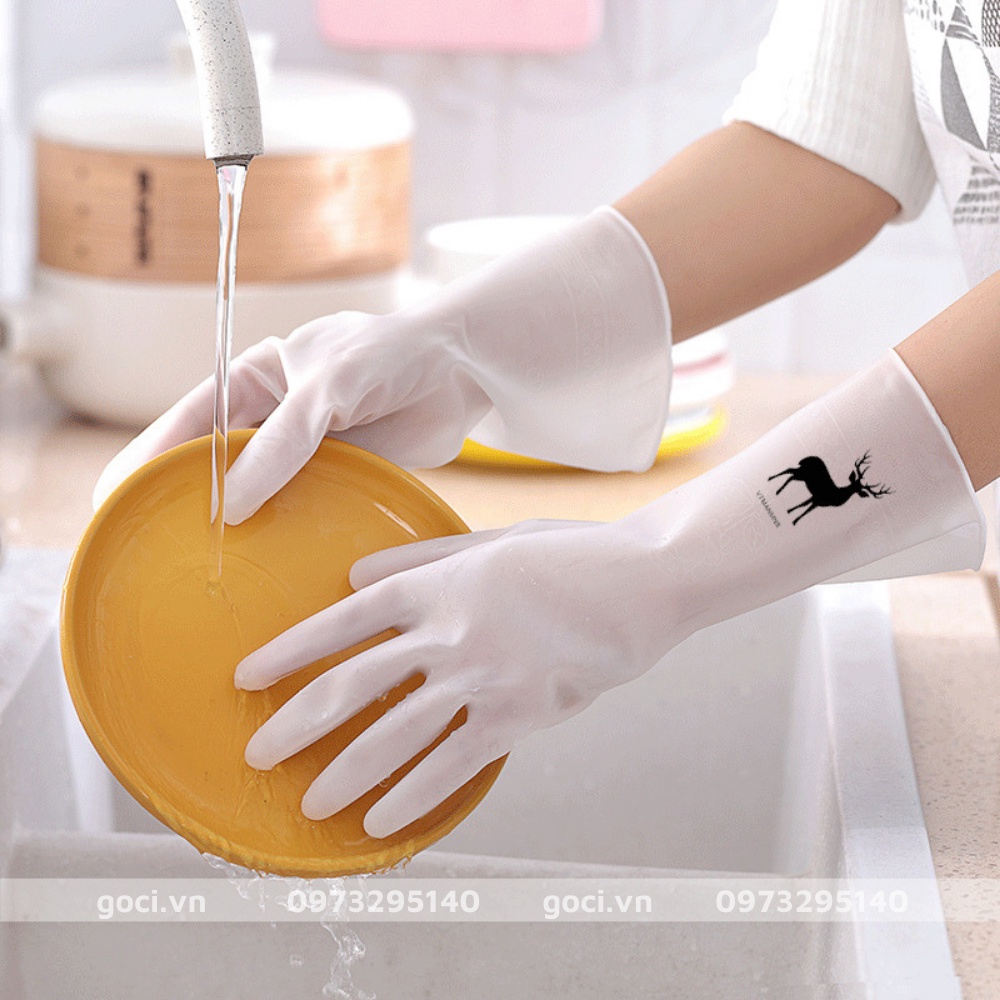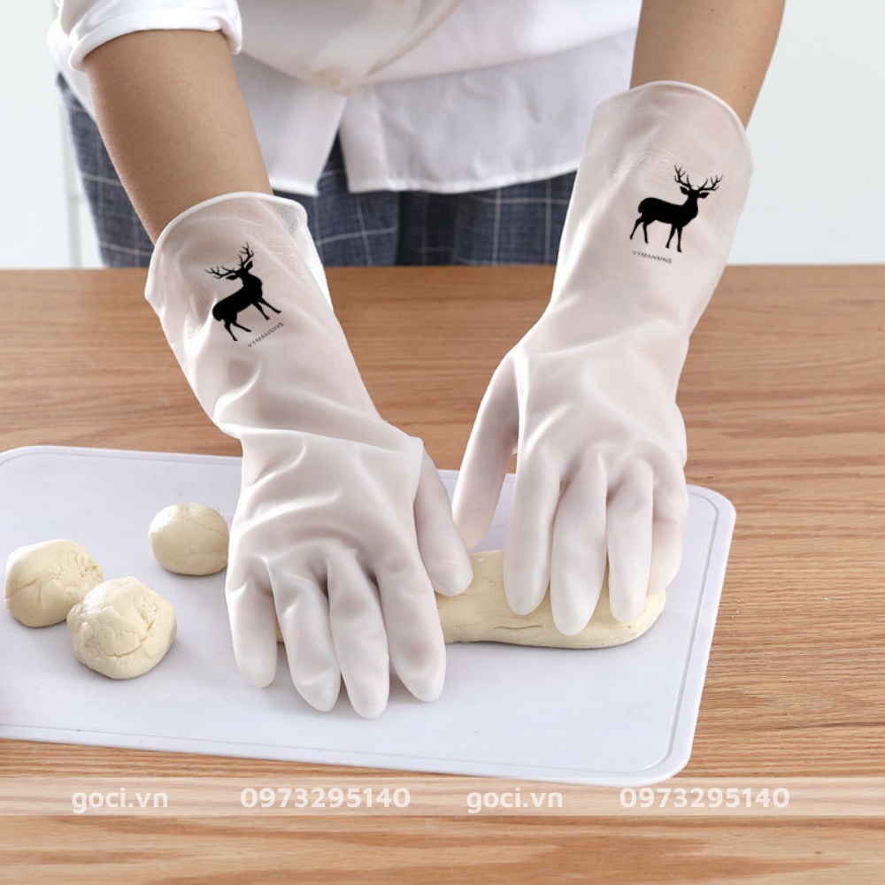 Găng tay cao su rửa chén siêu dai con hươu bền bỉ an toàn màu trắng tiện lợi