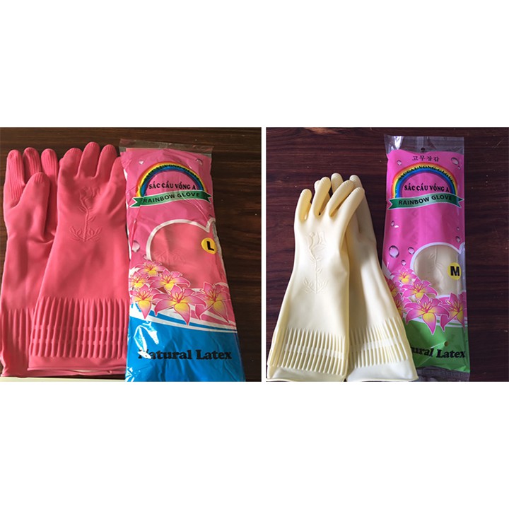 Găng Tay Cao Su Sắc Cầu Vồng A Loại Cao CấpGăng tay cao su được sản xuất từ các nguyên liệu cao su thiên nhiên và hóa chất không độc hại nên găng tay mềm, độ co giãn tốt, chống nước và chống hóa chất nhẹ.