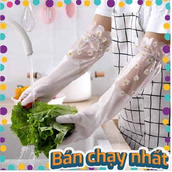 Găng tay cao su siêu dai, chông trượt, chống thấm hoạ tiết hoa cúc daisy siêu xinh