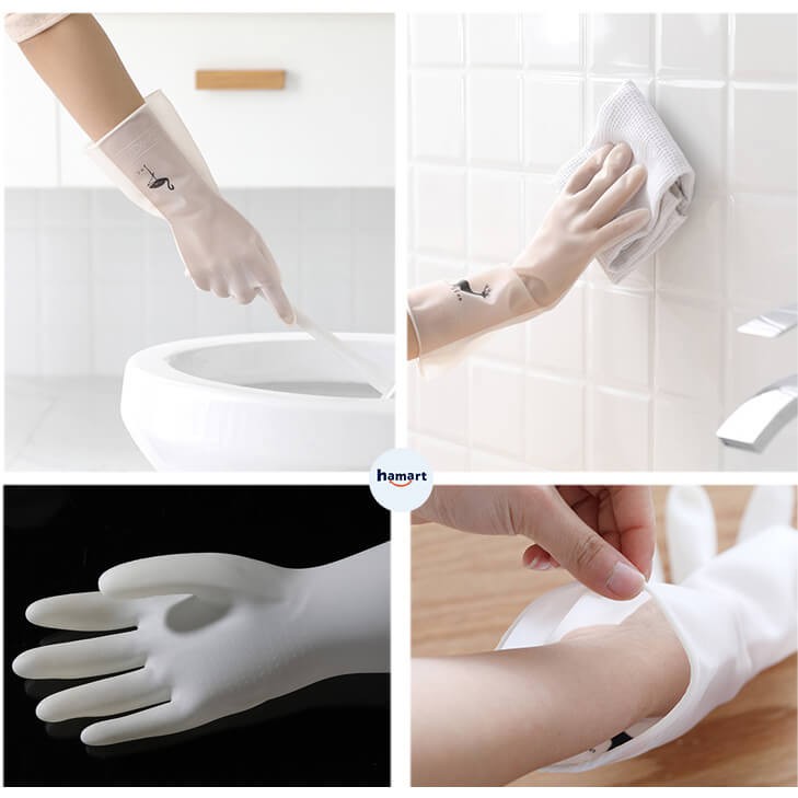Găng Tay Cao Su Siêu Dai Hình Hạc Bao Tay Rửa Chén Chất Lượng Cao Chống Trượt Thoáng Mát
