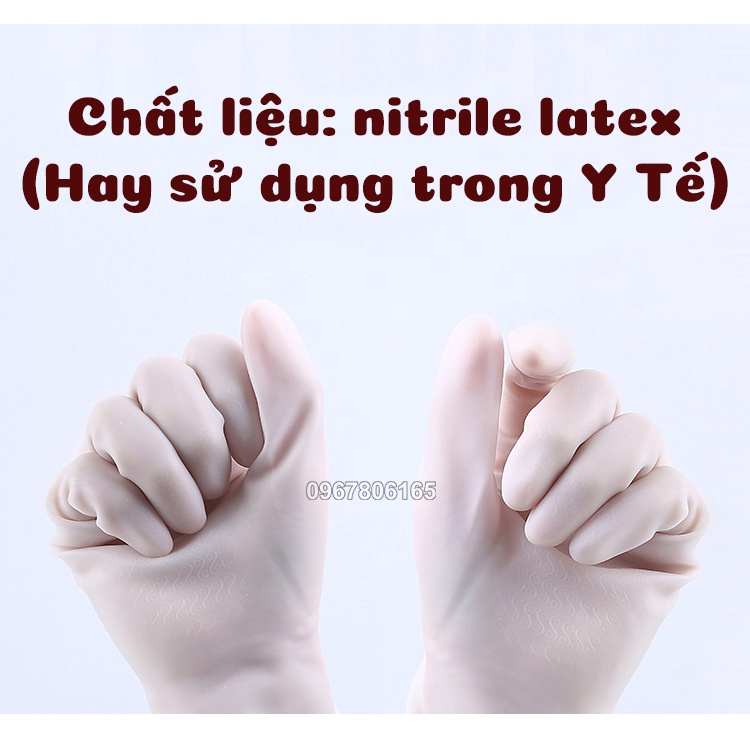 Găng tay cao su siêu bền, siêu dai được làm từ chất liệu Nitrile Latex (Hay dùng trong Y tế) có độ đàn hồi cực kỳ tốt, chống rách cao, tạo cảm giác chân thực khi cầm nắm. Có khả năng chống hao mòn, chống đâm thủng, chống hóa chất☑️ THÔNG TIN SẢN PHẨM: