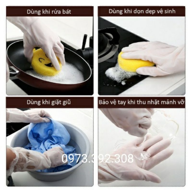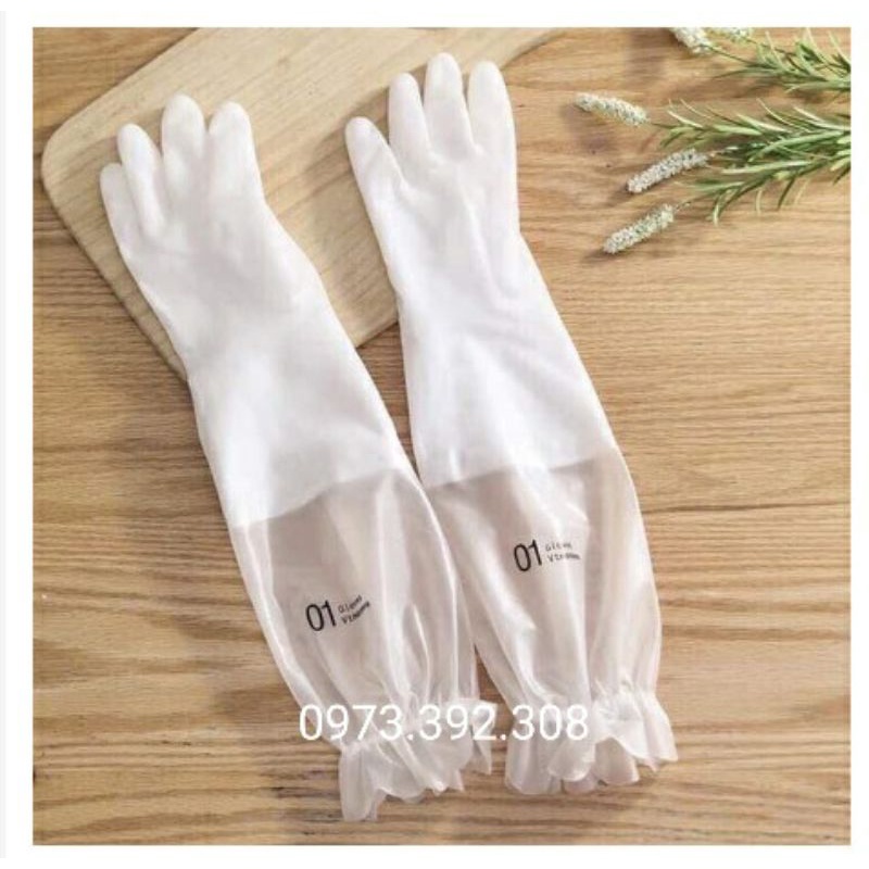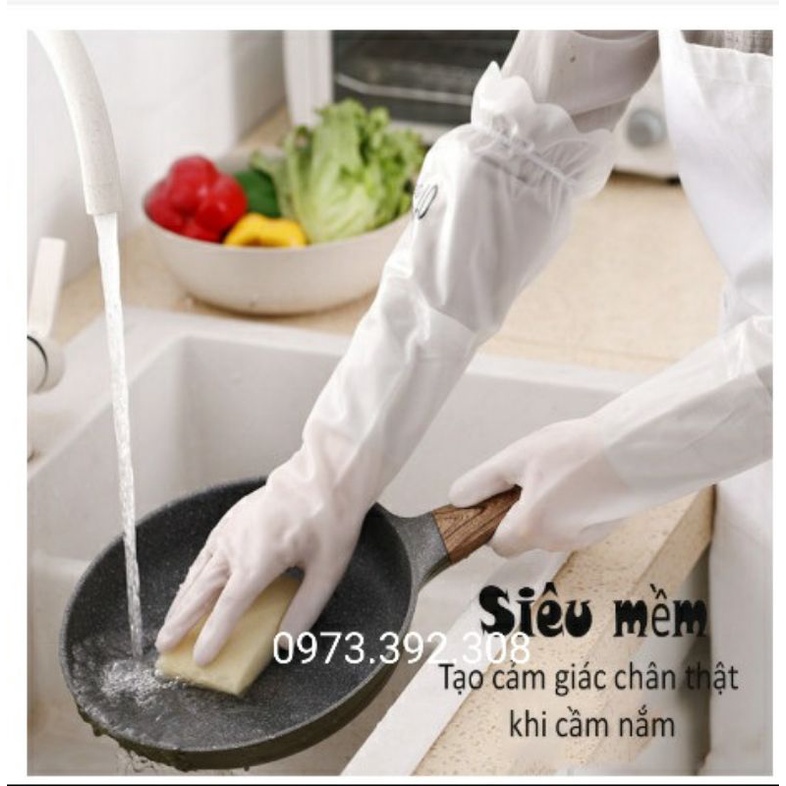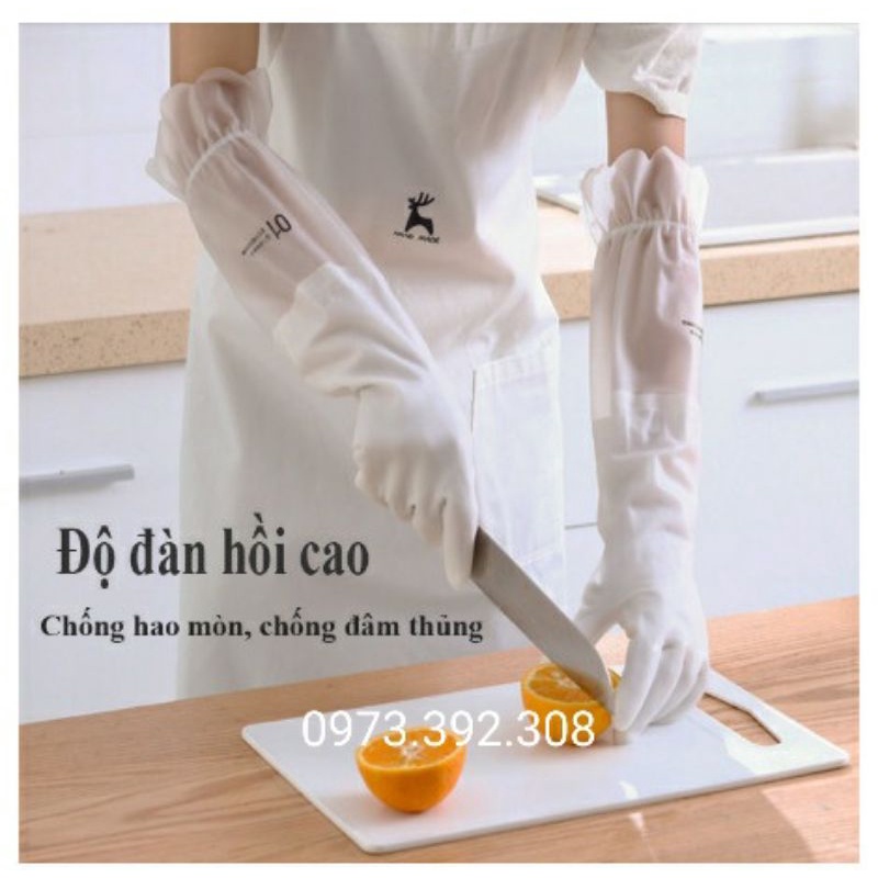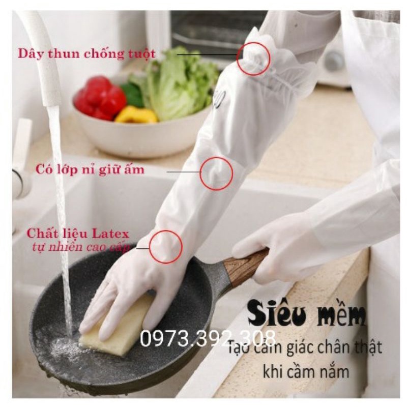 Găng Tay Cao Su Siêu Dai Siêu Lót Nỉ Có Chun Chống Tụt