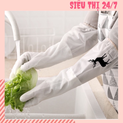 GĂNG TAY CAO SU LÓT NỈ SIÊU DAI, GĂNG TAY CAO SU DÀI, GĂNG TAY CAO SU CON HƯƠU, GĂNG TAY CAO SU RỬA BÁT ( có dây thun chống tuột , lót nỉ siêu ấm )Găng tay cao su là vật dụng không thể thiếu được của các chị em nội trợ, nhất là trong những mùa đông giá rét.