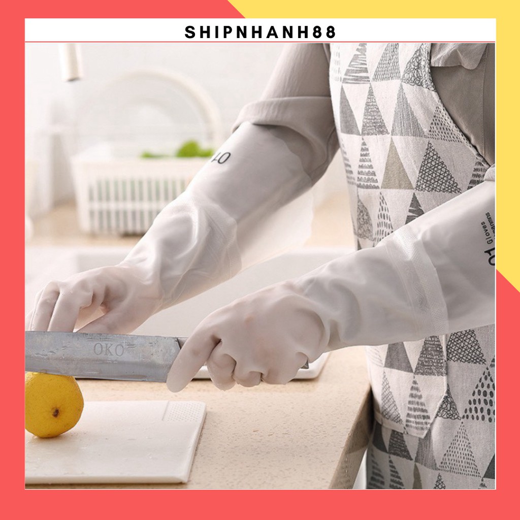Giới thiệu Găng tay cao su siêu dai, siêu bền loại dài - lót nỉ- Có chun chống tụt, chống dính nước 88237 SHIP NHANH 88