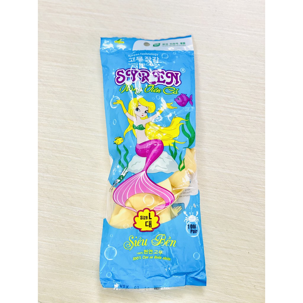GĂNG TAY CAO SU TỰ NHIÊN SYRENCông dụng: Bảo vệ da tay khi giặt đồ, rửa chén bát, tẩy rửa nhà vệ sinh,...