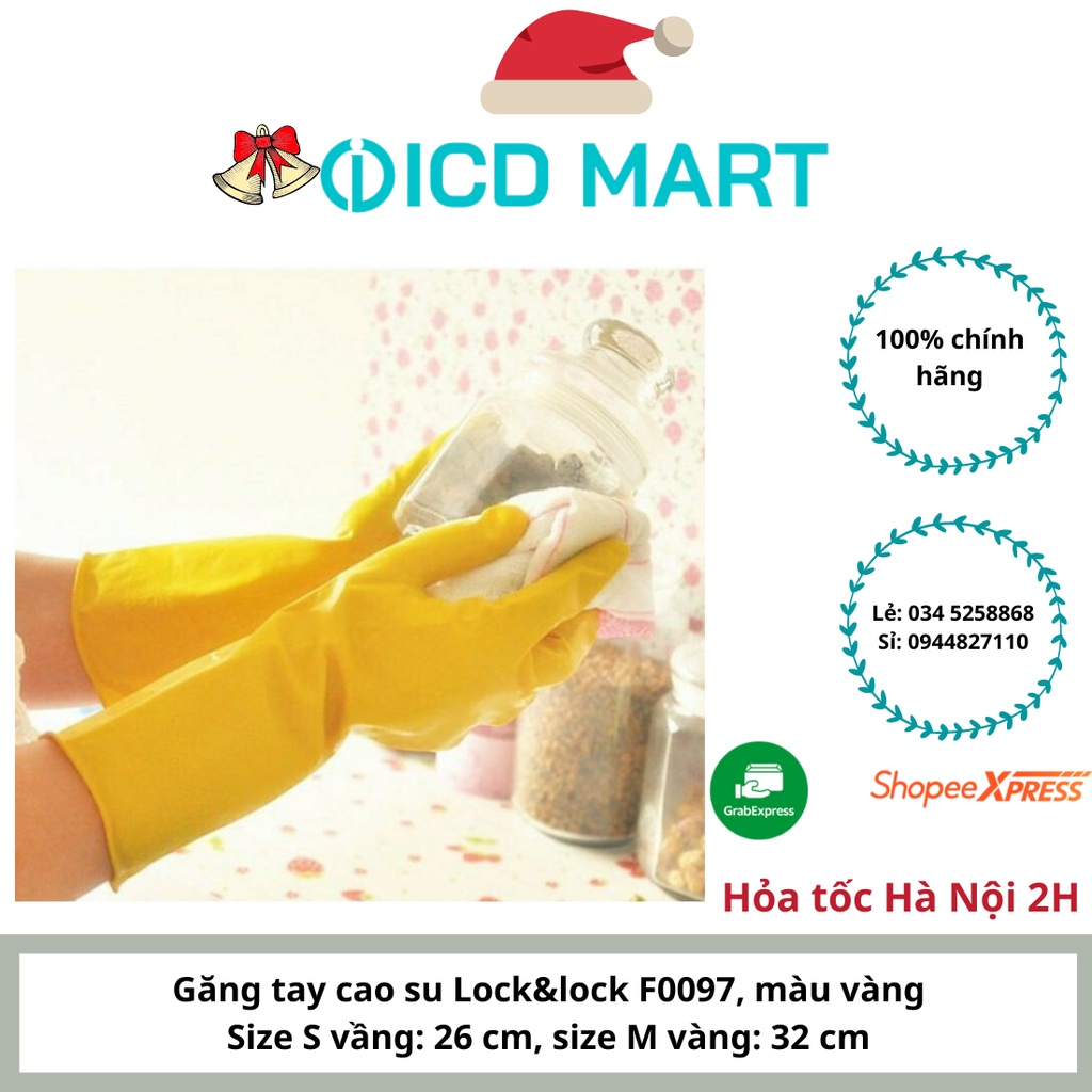 Nhà cửa & Đời sống > Dụng cụ nhà bếp > Tạp dề & gắng tay nấu nướng || Găng tay cao su tự nhiên Lock&Lock, size S vàng (26cm) và M vàng (32cm), cao su tự nhiên, ôm tay bền đẹpCòn hàng