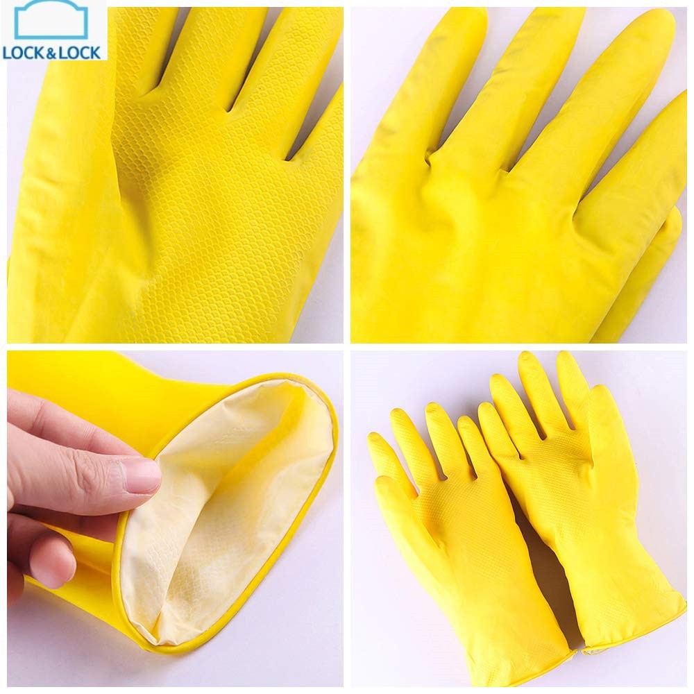 Găng tay cao su tự nhiên Lock&Lock, size S vàng (26cm) và M vàng (32cm), cao su tự nhiên, ôm tay bền đẹp