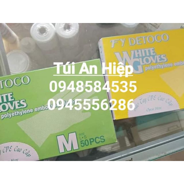 Găng tay PE - dùng 1 lần là nghiện! 50 đôi/hộpGăng tay chất siêu dai, bề mặt sần tăng ma sát, ko rách. Sử dụng được nhiều lần.