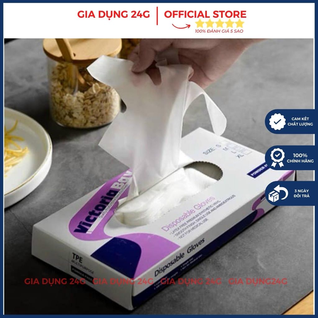 Găng tay làm bếp nấu ăn vệ sinh Victoria Bay chất liệu TPE siêu dai không mùi chống nhăn hộp 100 cái size M